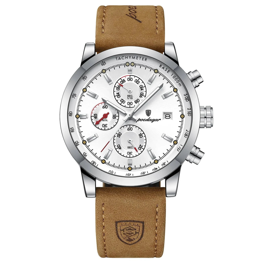 Toque de Luxo: A elegância encontra o luxo no Relógio Poedagar, com detalhes que refletem um padrão elevado de qualidade. A pulseira em couro legítimo proporciona conforto excepcional, enquanto o fecho de aço inoxidável adiciona um toque de requinte.
