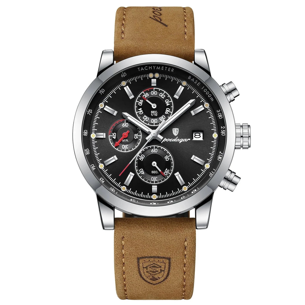 Design Impecável: Cada detalhe do Relógio Poedagar é uma obra-prima de design. A caixa robusta em aço inoxidável protegida por um mostrador orgânico, realçada por marcadores de horas distintas e ponteiros precisos. A combinação perfeita de forma e função, este relógio complementa qualquer traje, desde o casual até o mais formal.