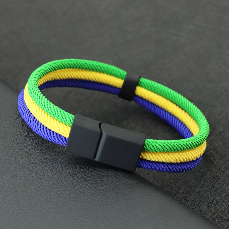 A pulseira Tricolor é um acessório elegante e versátil, projetado para adicionar um toque de cor e estilo ao seu visual diário. Composta por três faixas de cores harmoniosas, esta pulseira é feita com materiais de alta qualidade que garantem durabilidade e conforto. Seu design moderno e sofisticado torna-a perfeita para diversas ocasiões, desde encontros casuais até eventos mais formais.